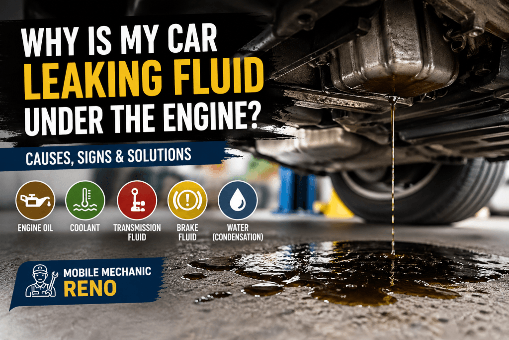 If your car is leaking fluid under the engine in Reno, it’s important to identify the type of fluid and act quickly. With the changing weather conditions in Nevada, from hot summers to colder mornings, small leaks can quickly turn into bigger mechanical problems.